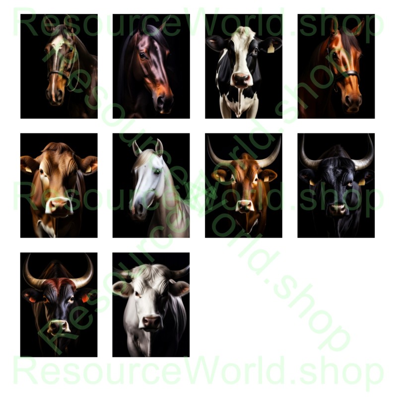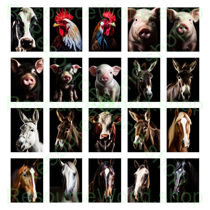 Bring the rustic charm of the countryside to your creative projects with this collection of 50 high-resolution farm animal portraits. From noble horses and steadfast donkeys to mighty bulls, curious goats, and playful pigs, each image is captured against a dramatic dark backdrop that accentuates every captivating detail. Shot in 8K quality, these JPEGs offer unparalleled clarity—ideal for everything from educational materials and marketing campaigns to unique decor. Upon purchase, you’ll receive a convenient ZIP file containing all 50 portraits, ready to elevate your projects with a touch of pastoral elegance.