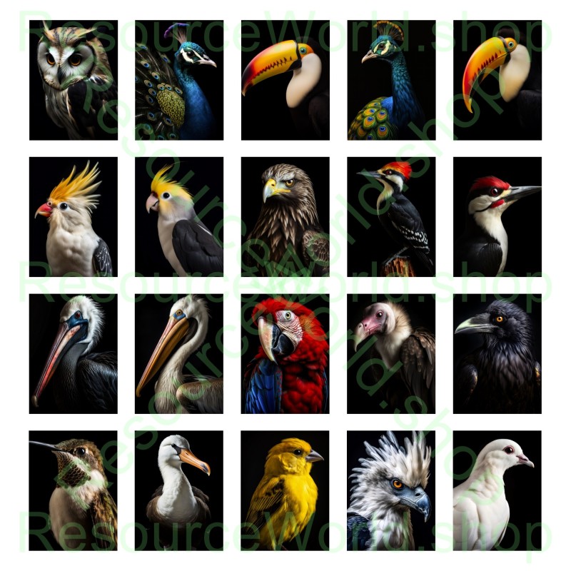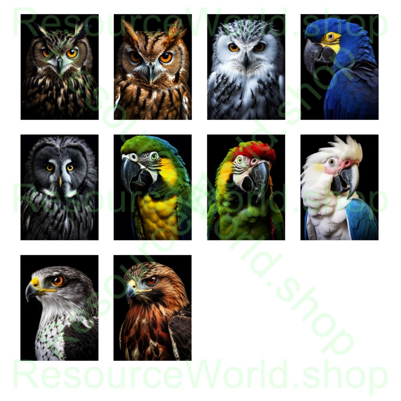 Celebrate the magnificent diversity of the avian world with this collection of 50 breathtaking bird portraits, presented in stunning 8K clarity. From regal eagles and vibrant parrots to graceful swans and mysterious owls, each species is photographed against a striking dark background that highlights every vivid feather and captivating gaze. Perfect for use in both digital and print formats—whether you’re designing educational materials, adding flair to a marketing campaign, or simply seeking striking wall art—these JPEG images provide exceptional detail and color accuracy. Upon purchase, you’ll receive a convenient ZIP file containing all 50 high-resolution files, making it easy to incorporate the beauty and elegance of these winged wonders into your next creative project.