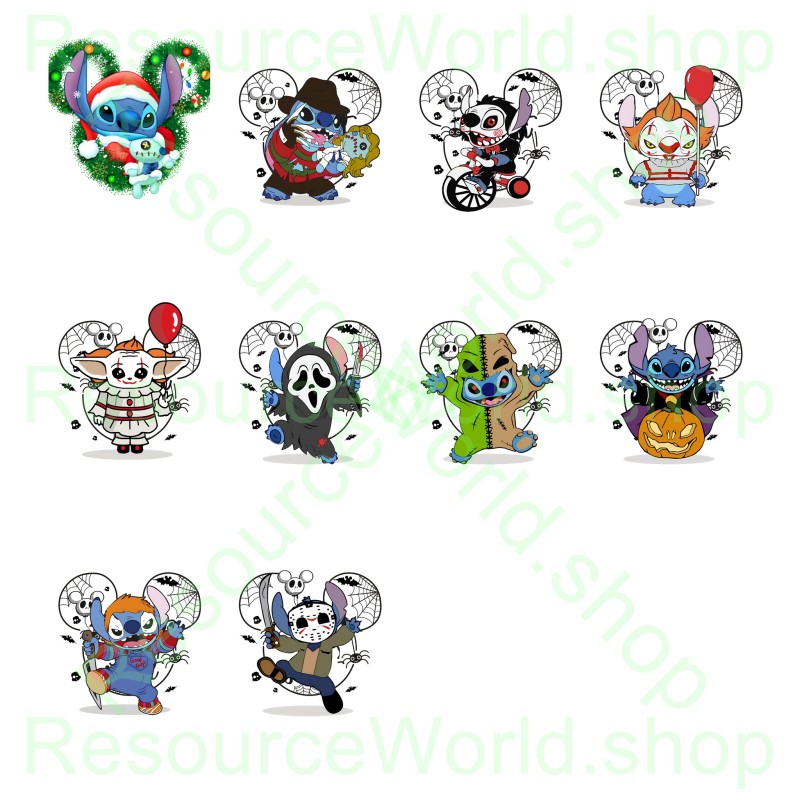 Embrace the playful side of Halloween with these 10 Stitch-inspired designs, each framed in a distinctive mouse-ear silhouette. From classic horror references to whimsical holiday motifs, every graphic comes in 4K-resolution PNG format—making it simple to layer onto T-shirts, stickers, party invites, or social media posts. Add a dash of mischievous spirit to your seasonal designs with this ZIP file full of quirky, costume-clad Stitch images—all shaped to captivate fans of both ghoulish fun and beloved cartoon icons!