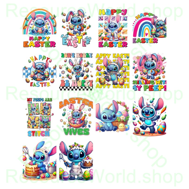 Hop into the spirit of spring with this collection of 12 Easter-themed designs, featuring everyone’s favorite mischievous blue buddy dressed in festive bunny ears and surrounded by colorful eggs, sweet treats, and joyful holiday motifs. Each 4K-resolution PNG comes with a transparent background for effortless layering, whether you’re creating custom T-shirts, personalized cards, party decorations, or social media posts. Let Stitch’s playful charm bring an extra dash of fun to your Easter celebrations—simply download the convenient ZIP file and start crafting your egg-stra special projects today!